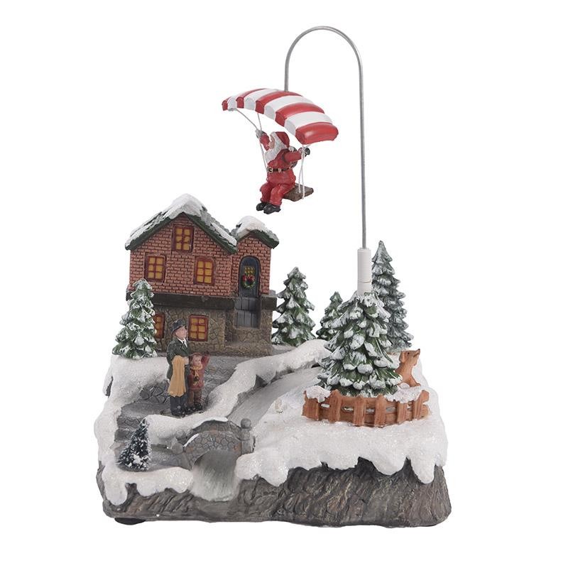 Χριστουγεννιατικη Διακοσμητικη Παρασταση 17x16x25 cm inart Χριστουγεννιάτικη σκηνή 'χωριό΄με φως και κίνηση. Διαστάσεις (ΜΠΥ) 17εκ x 16εκ x 25εκ Υλικό Κατασκευής Polyresin Χρώματα White-Ivory, Green