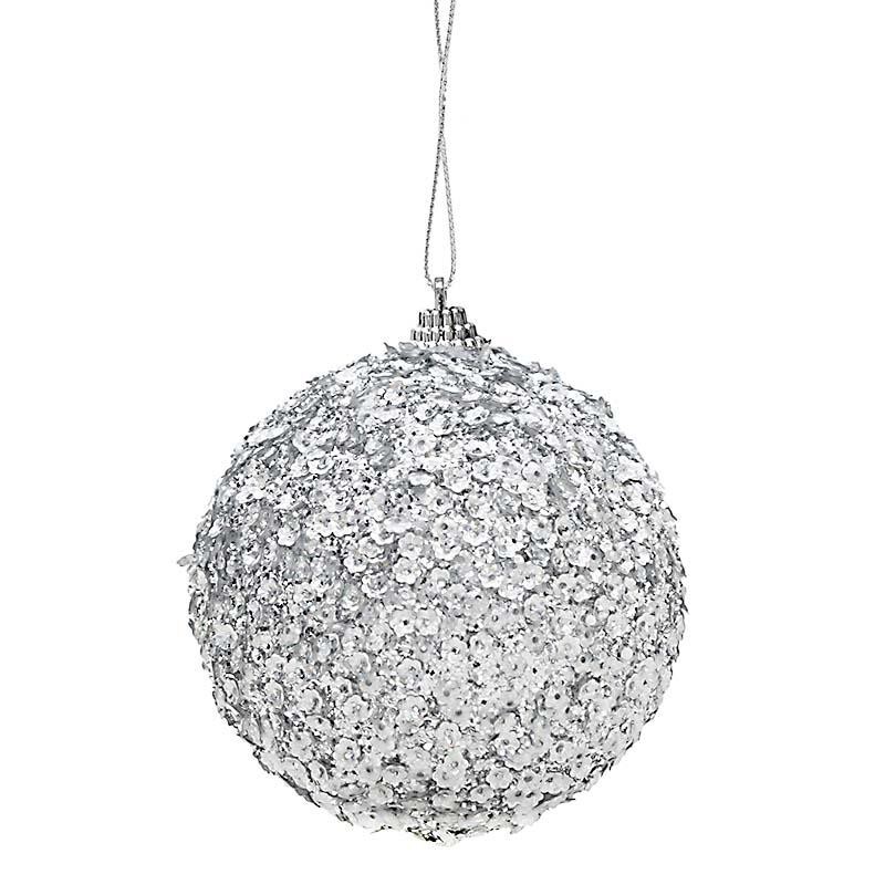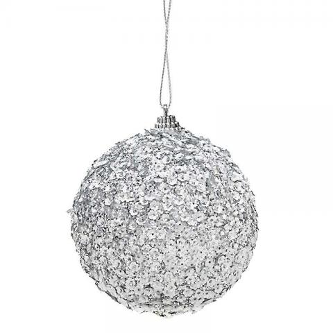 Χριστουγεννιάτικη μπάλα με στρας, σε ασημί χρώμα. 10 cm inart