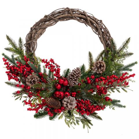 ΠΡΑΣΙΝΟ ΣΤΕΦΑΝΙ ΜΕ ΚΟΚΚΙΝΑ BERRIES ΚΑΙ ΚΟΥΚΟΥΝΑΡΙΑ Φ50ΕΚ 91083 | Crystal