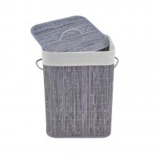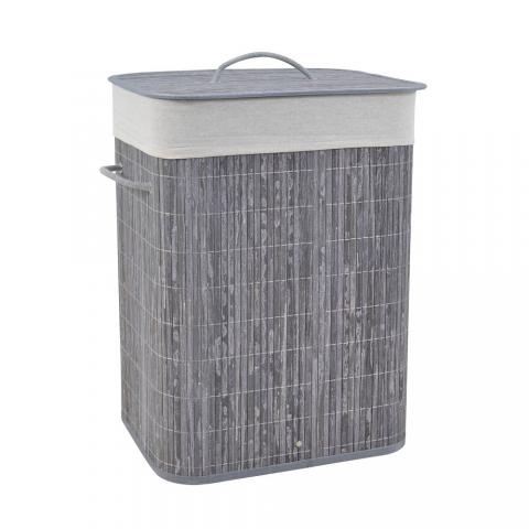 Καλάθι άπλυτών με καπάκι, από ξύλο μπαμπού σε γκρι χρώμα, ιδιαίτερα ανθεκτικό στον χρόνο και αφαιρούμενο σάκο.H σύνθεση του υφάσματος είναι από βαμβακερό λινό κ πολυεστέρα.Είναι αναδιπλούμενο για εύκολη αποθήκευση και διαθέτει λαβές για εύκολη μεταφορά.