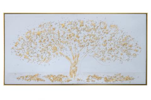 ΠΙΝΑΚΑΣ ΔΕΝΤΡΟ ΖΩΓΡΑΦΙΚΗΣ ΣΕ ΚΑΜΒΑ ΜΕ ΚΟΡΝΙΖΑ ΧΡΥΣΟ ΔΕΝΤΡΟ ΣΕ ΛΕΥΚΟ ΦΟΝΤΟ ΑΝΑΓΛΥΦΟ.62Χ122Χ3ΕΚ