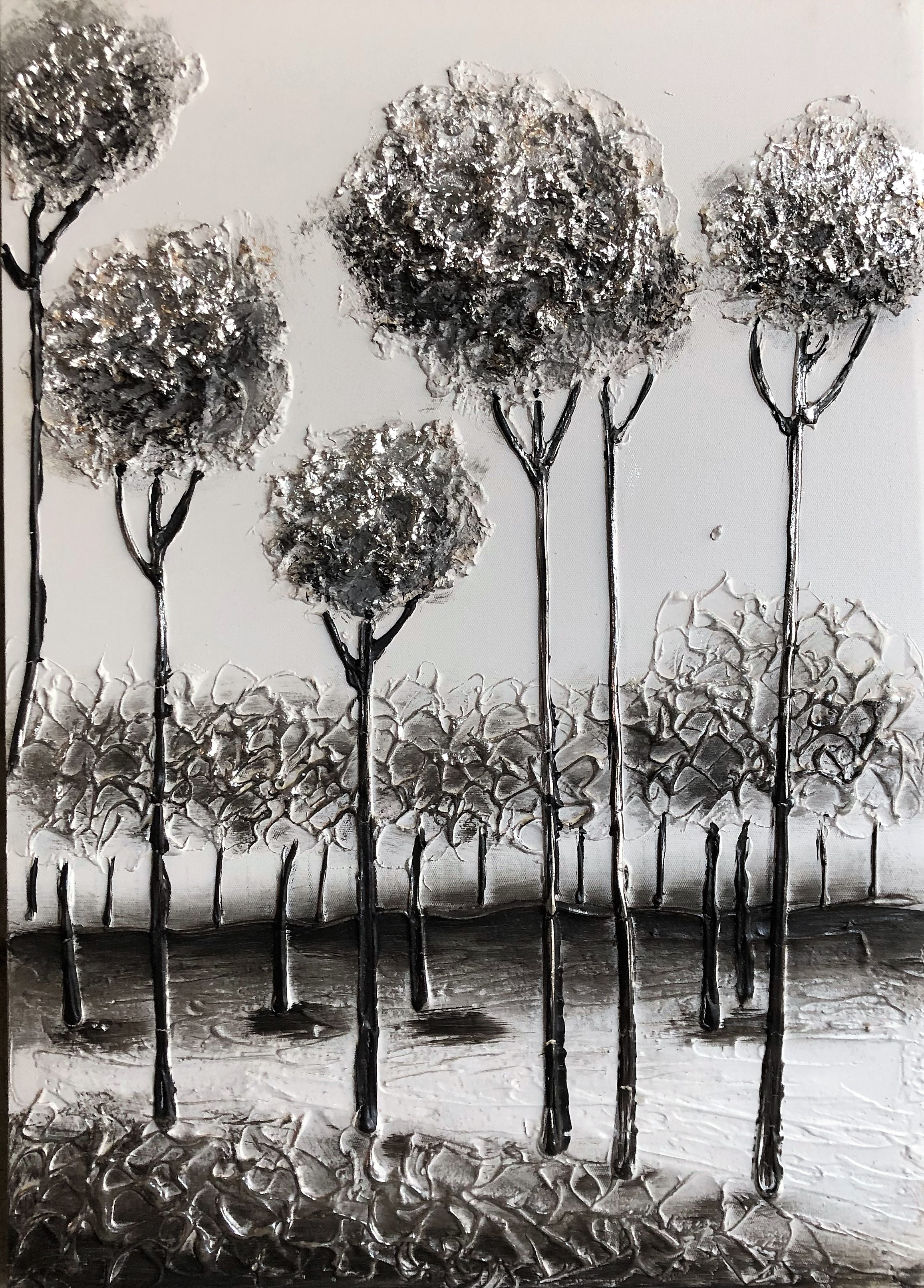ΠΙΝΑΚΑΣ ΚΑΜΒΑΣ ΔΕΝΤΡΑ ΓΚΡΙ/ΑΣΗΜΙ ΦΥΛΛΑ ΛΕΥΚΟΣ ΚΑΜΒΑΣ 50Χ70ΕΚ HANDMADE | Crystal