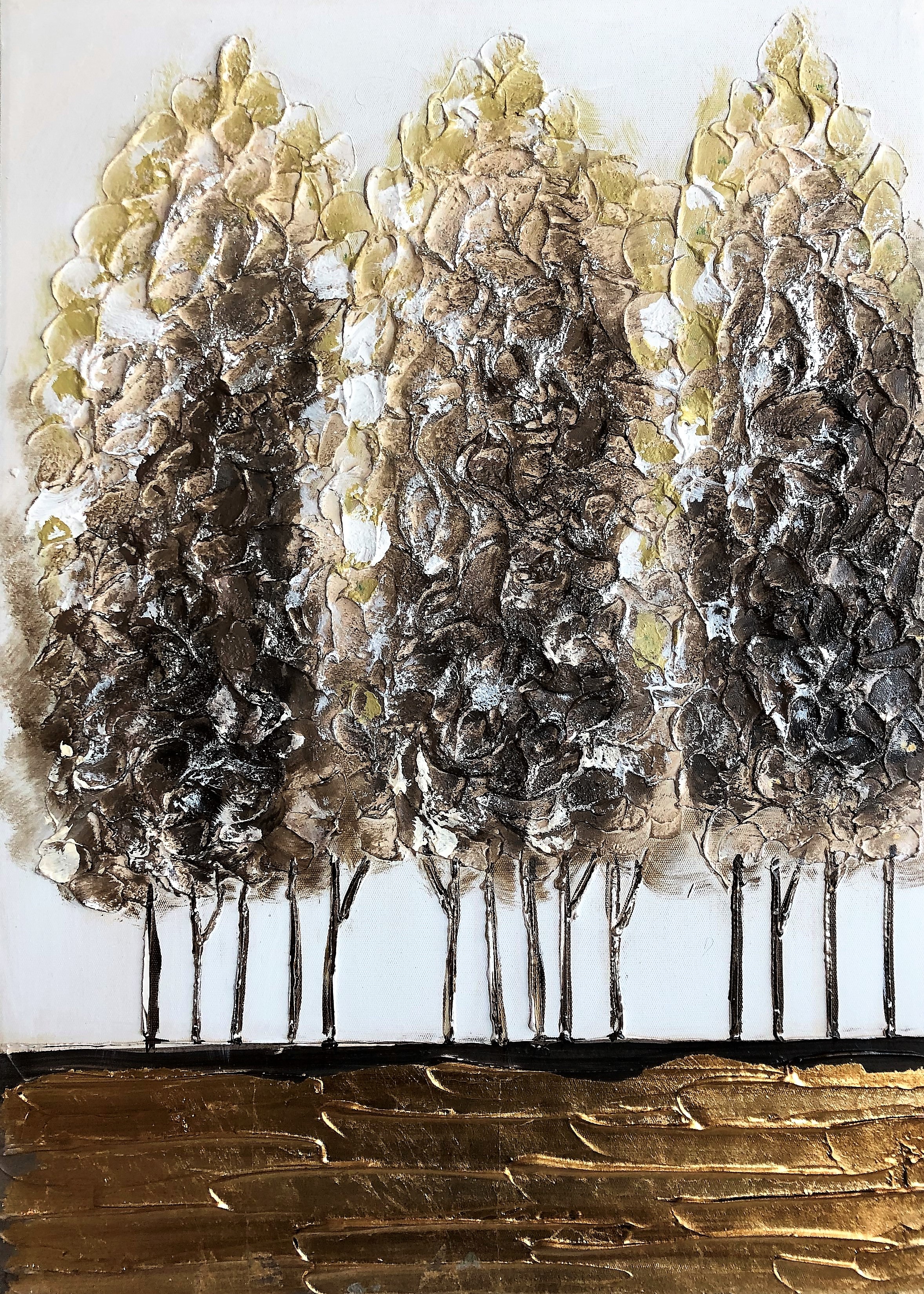 ΠΙΝΑΚΑΣ ΚΑΜΒΑΣ ΔΕΝΤΡΟ ΚΑΦΕ ΕΚΡΟΥ ΑΣΗΜΙ ΦΥΛΛΑ ΧΡΥΣΟ ΕΔΑΦΟΣ 50Χ70ΕΚ HANDMADE