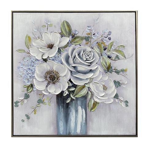ΠΙΝΑΚΑΣ ΚΑΜΒΑΣ ΧΕΙΡΟΠΟΙΗΤΟΣ ΛΟΥΛΟΥΔΙΑ ΣΕ ΒΑΖΟ , ΛΕΥΚΟ-ΜΠΛΕ, 80x80x3.5cm 755-12131 ESTHETI | Crystal