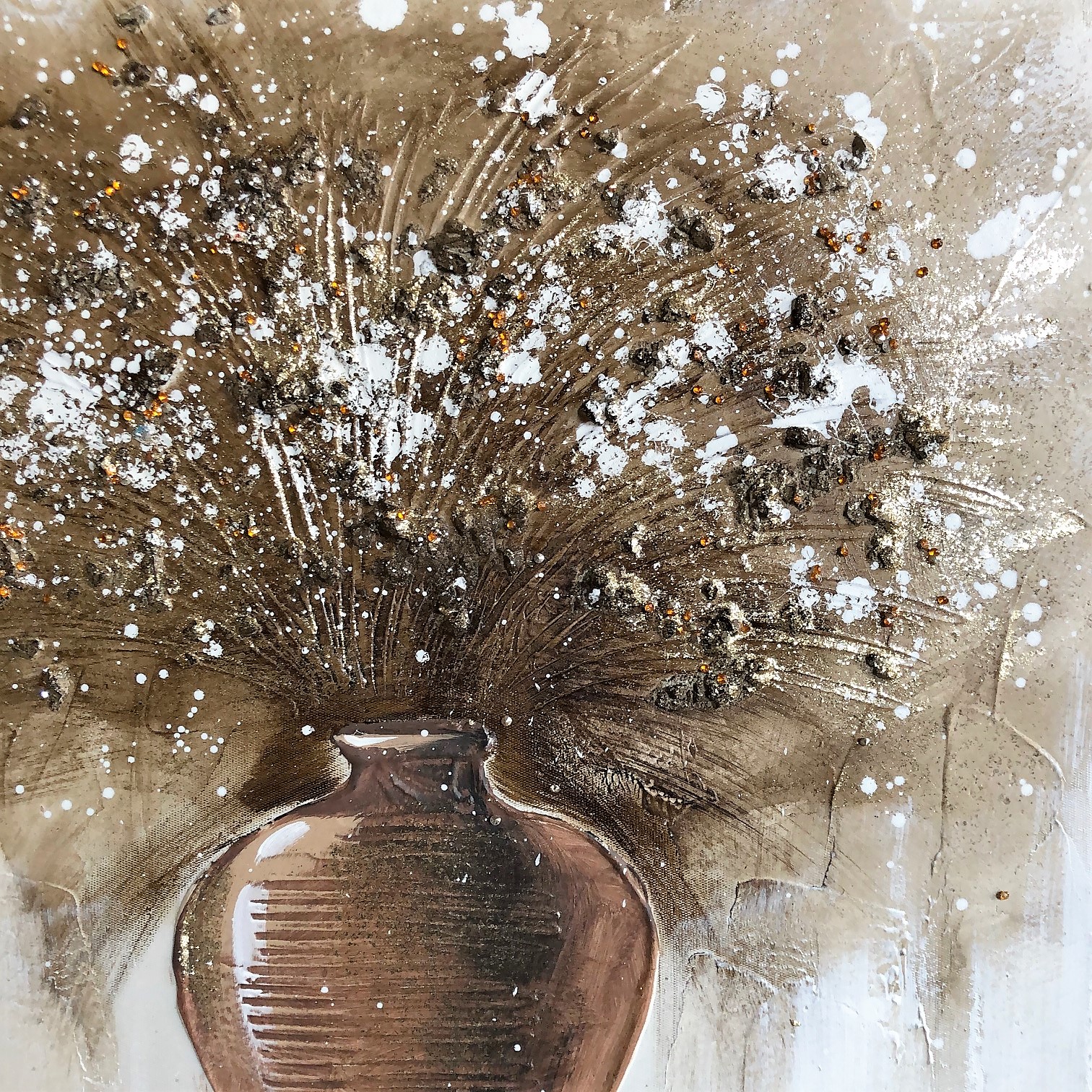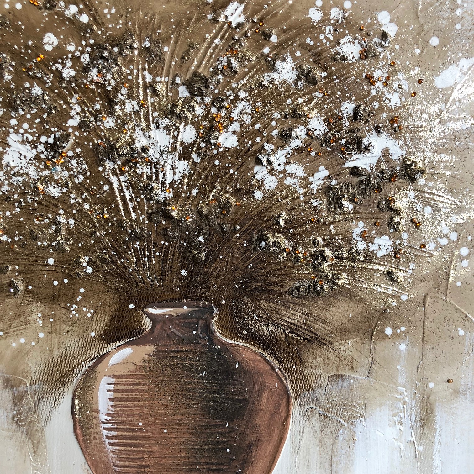 ΠΙΝΑΚΑΣ ΚΑΜΒΑΣ ΒΑΖΟ ΚΑΦΕ ΧΡΥΣΑ/ΜΕΛΙ ΛΟΥΛΟΥΔΙΑ 40Χ40ΕΚ HANDMADE | Crystal