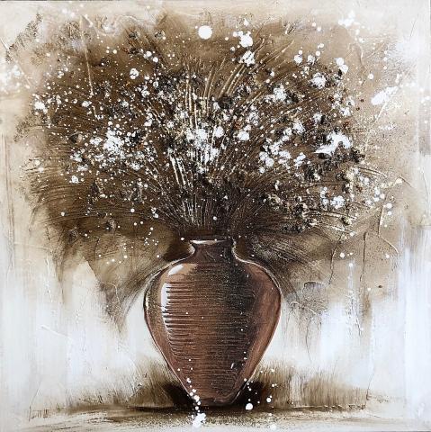 ΠΙΝΑΚΑΣ ΚΑΜΒΑΣ ΒΑΖΟ ΚΑΦΕ ΧΡΥΣΑ/ΜΕΛΙ ΛΟΥΛΟΥΔΙΑ 40Χ40ΕΚ HANDMADE