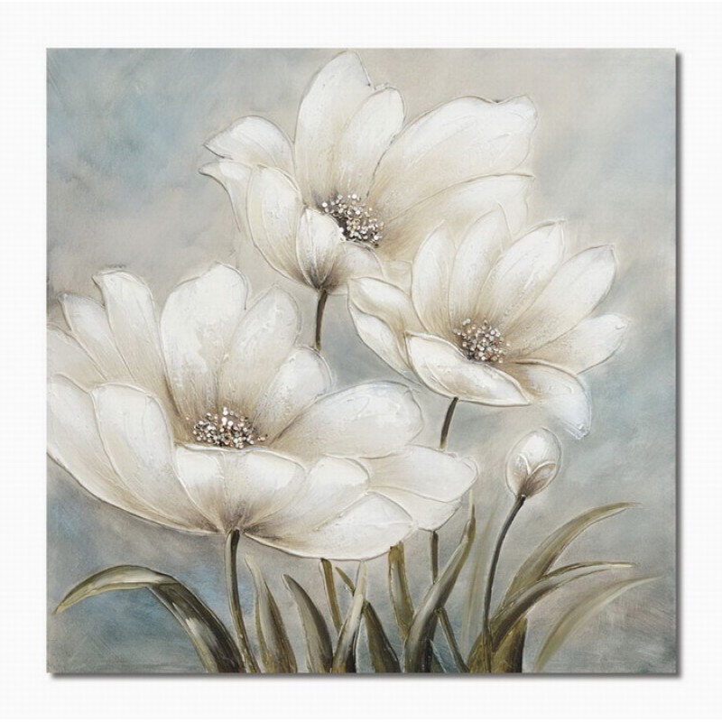 Πίνακας Σε Καμβά Λουλούδια Με Ασημί Λευκή Λεπτομέρεια 60x60x3cm HAND MADE