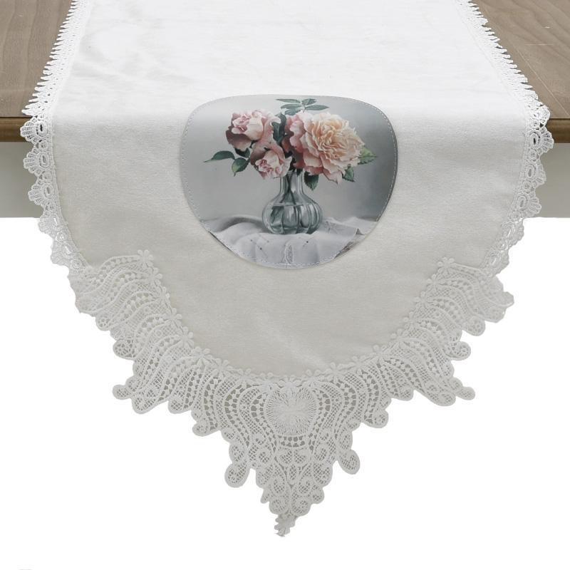 ΤΡΑΒΕΡΣΑ ΒΕΛΟΥΔΙΝΗ ΜΕ ΔΑΝΤΕΛΑ ΛΟΥΛΟΥΔΙΑ ΛΕΥΚΗ 40Χ140EK | Crystal