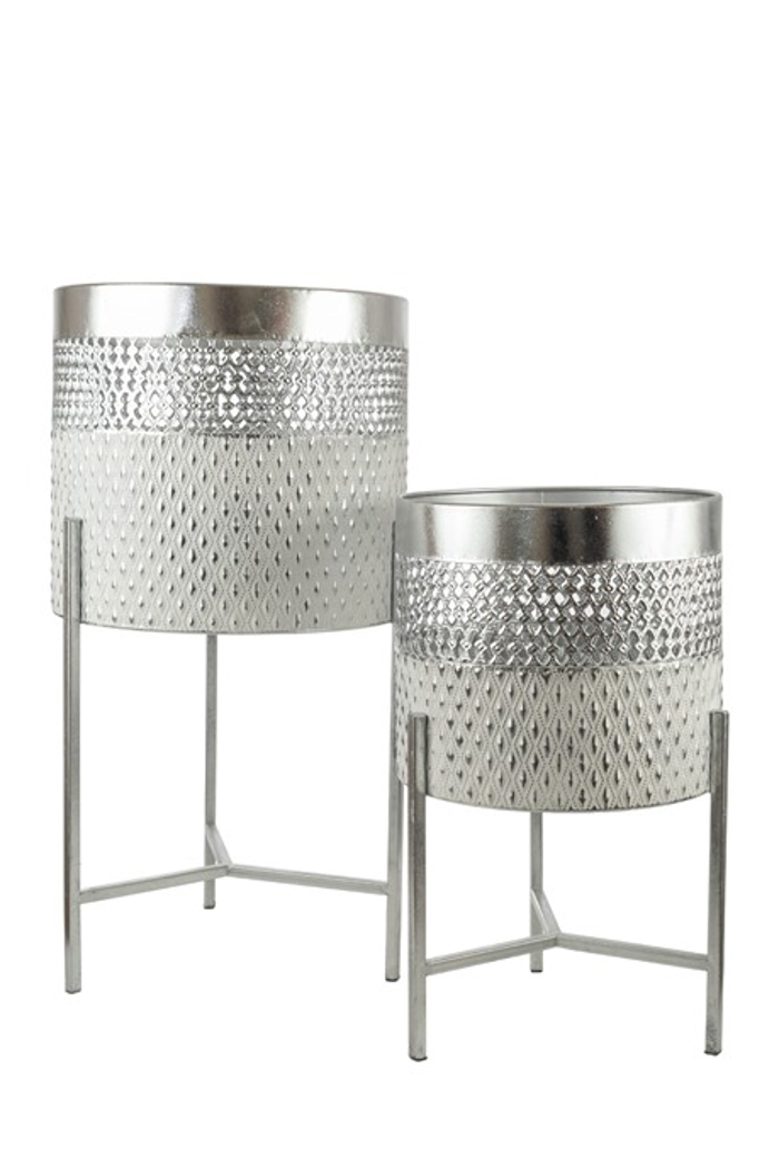 Zen Collection Σετ των 2 Κασπώ Μεταλλικό Ασημί/Λευκό Τρυπητό Φ29.8x56cm 50606