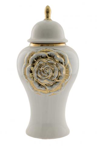 ΔΙΑΚΟΣΜΗΤΙΚΟ ΚΕΡΑΜΙΚΟ ΒΑΖΟ ΜΕ ΚΑΠΑΚΙ ΛΟΥΛΟΥΔΙ ΧΡΥΣΟ ΑΣΠΡΟ 22Χ22Χ45ΕΚ