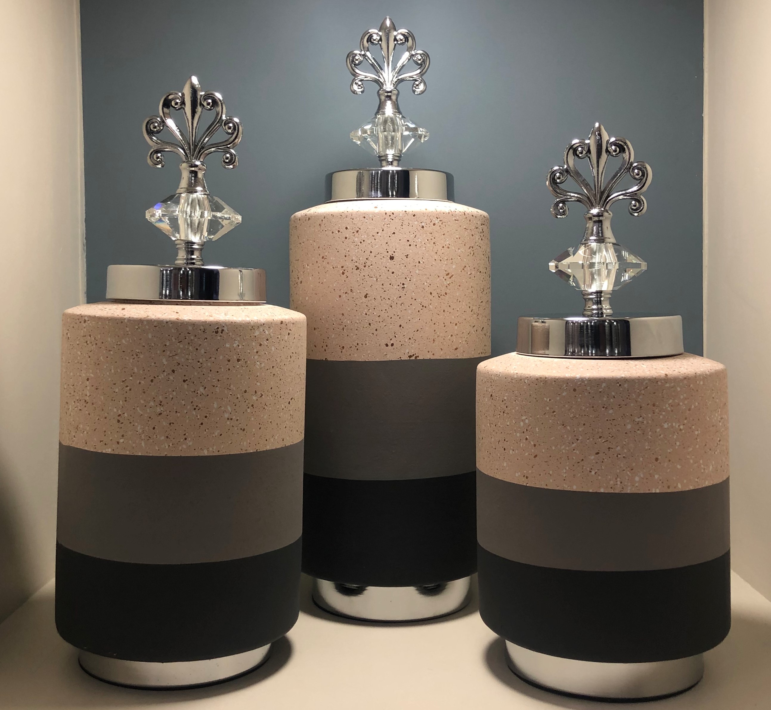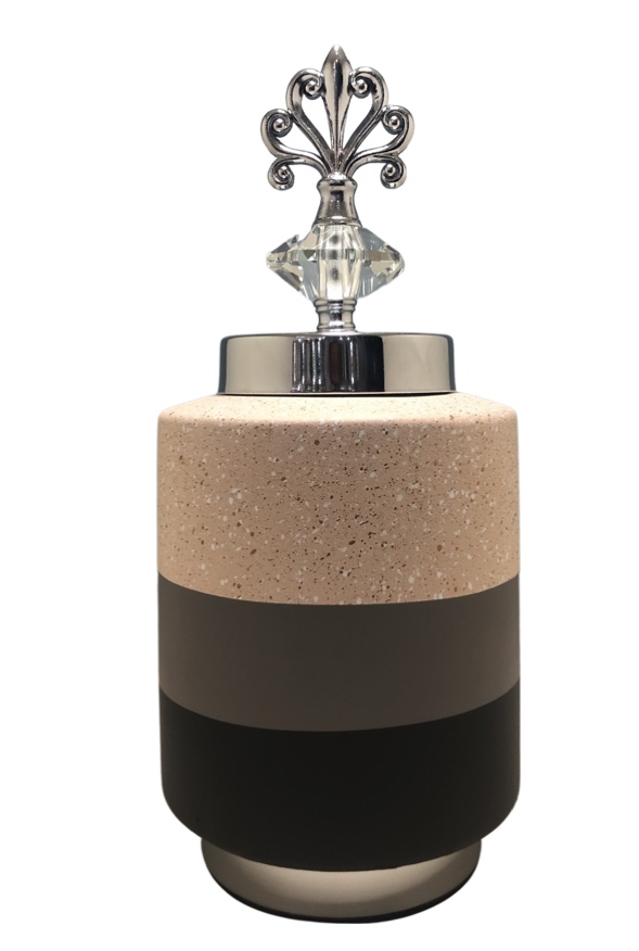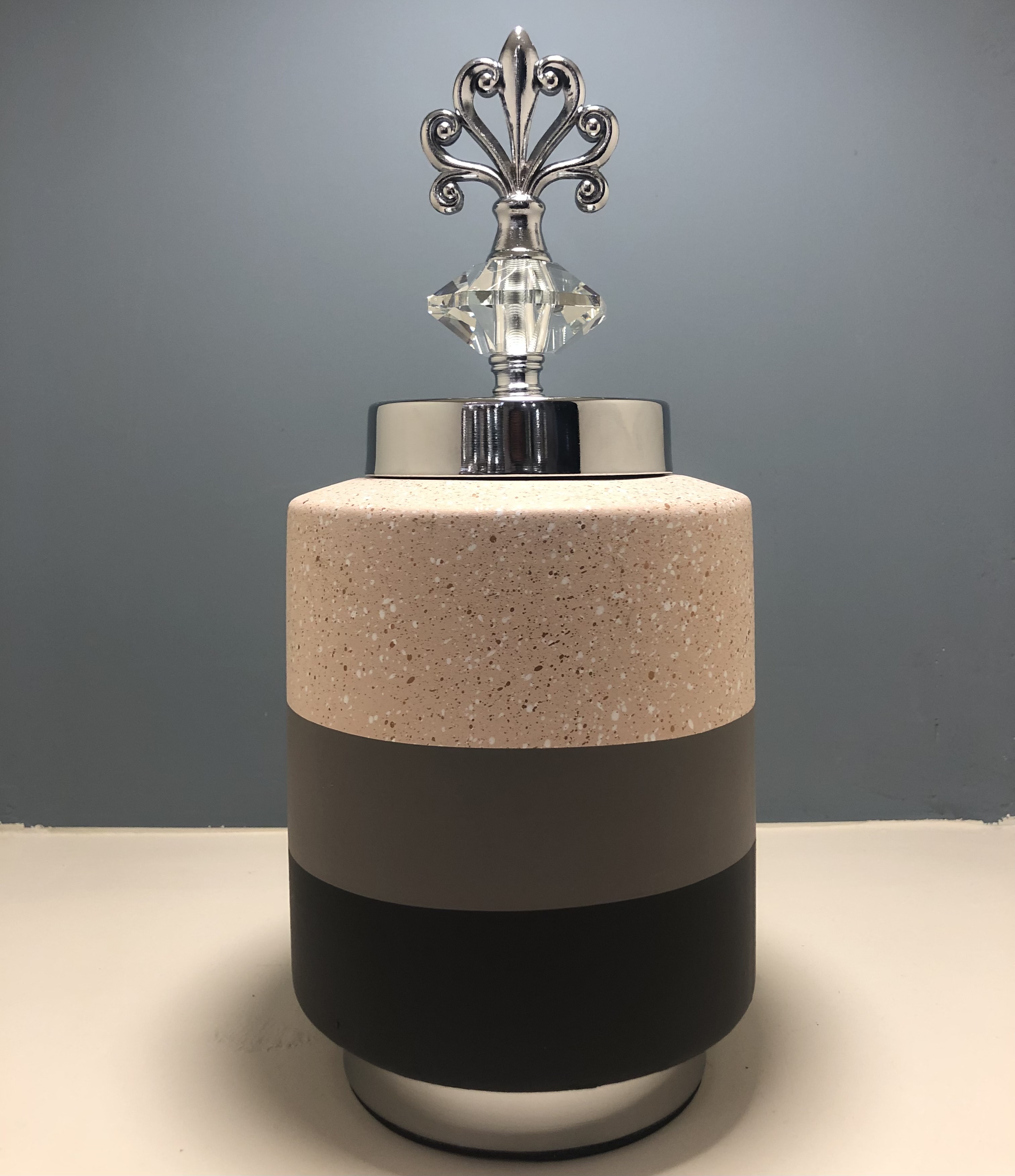 ΚΕΡΑΜΙΚΟ ΒΑΖΟ ΜΕ ΜΕΤΑΛΛΙΚΟ INOX ΚΑΠΑΚΙ ΚΑΙ ΚΡΥΣΤΑΛΛΟ 14Χ14Χ27ΕΚ ΑΝΘΡΑΚΙ/ΓΚΡΙ/ΣΟΜΟΝ