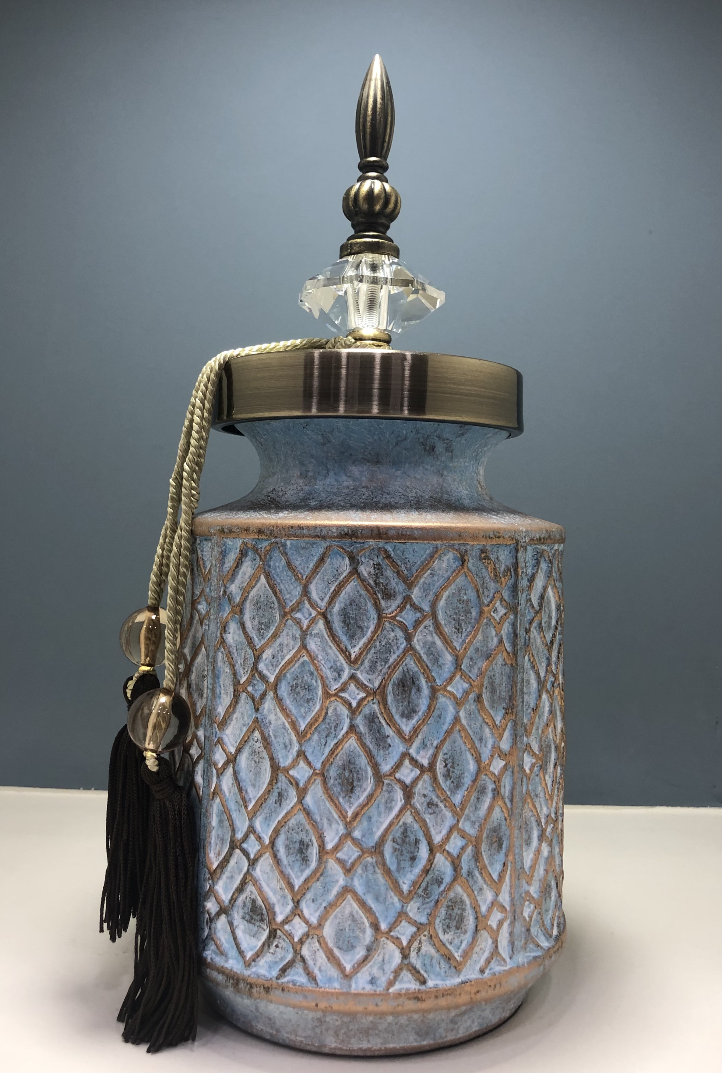 ΚΕΡΑΜΙΚΟ ΒΑΖΟ ΜΕ ΜΕΤΑΛΛΙΚΟ ΜΠΡΟΥΤΖΙΝΟ ΚΑΠΑΚΙ ΚΑΙ ΚΡΥΣΤΑΛΛΟ 14Χ14Χ33ΕΚ ΤΙΡΚΟΥΑΖ ΧΡΥΣΟ