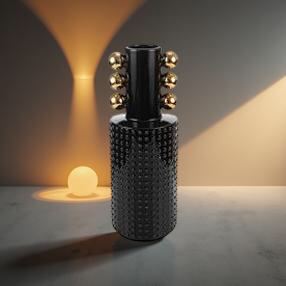 ΚΕΡΑΜΙΚΟ ΒΑΖΟ ΜΟΝΤΕΡΝΟ ΜΑΥΡΟ ΜΕ ΧΡΥΣΕΣ ΜΠΙΛΙΕΣ 12Χ12Χ35ΕΚ 50878 | Crystal
