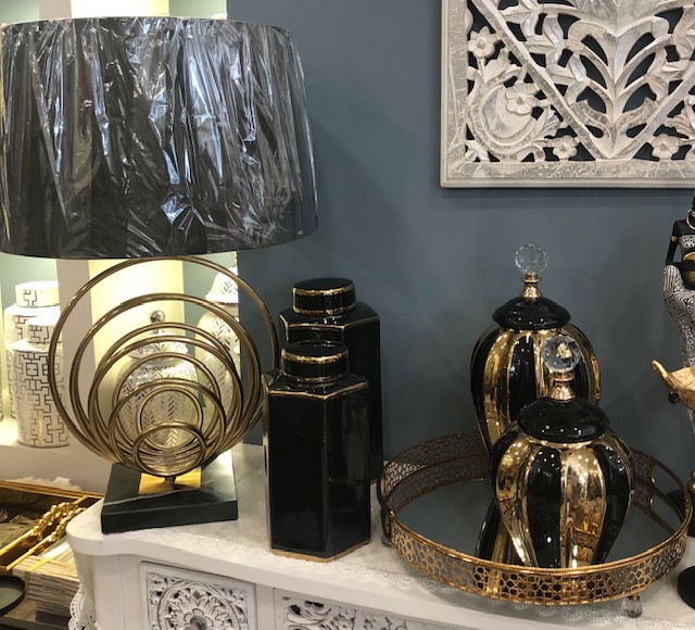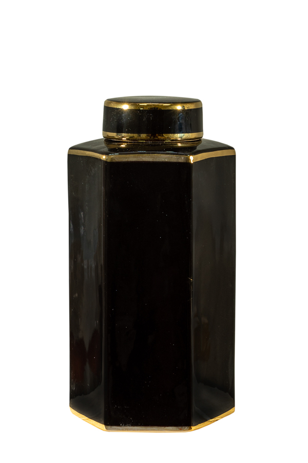 ΒΑΖΟ ΠΟΡΣΕΛΑΝΗ ΠΟΛΥΓΩΝΙΚΟ ΜΑΥΡΟ ΜΕ ΧΡΥΣΕΣ ΓΡΑΜΜΕΣ 28,5Χ13Χ15ΕΚ | Crystal