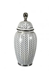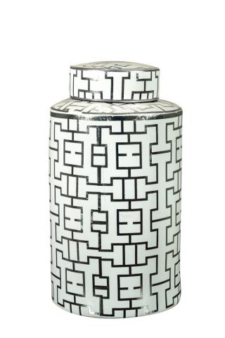 ΒΑΖΟ ΤΖΑΡ ΚΕΡΑΜΙΚΟ ΚΥΛΙΝΔΡΙΚΟ ΛΕΥΚΟ ΜΕ ΑΣΗΜΙ ΣΧΕΔΙΟ 32Χ17ΕΚ | Crystal