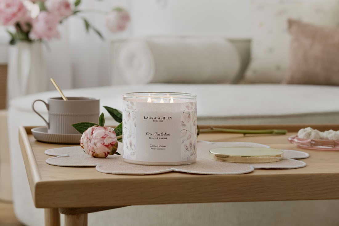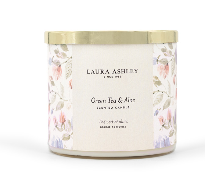 Φέρτε μια αίσθηση φρεσκάδας και φυσικής αρμονίας στον χώρο σας με το αρωματικό κερί Laura Ashley με άρωμα Green Tea & Aloe.Η σύνθεση του αρώματος συνδυάζει την καθαρότητα του πράσινου τσαγιού, που τονώνει και αναζωογονεί, με τη δροσιά της αλόης, η οποία προσφέρει αίσθηση ηρεμίας και χαλάρωσης.Ένα άρωμα ανάλαφρο, φυσικό και εκλεπτυσμένο, ιδανικό για καθημερινή χρήση ή στιγμές απόλυτης ευεξίας.Κατασκευασμένο από 100% φυσικό κερί σόγιας, με τρία βαμβακερά φιτίλια, προσφέρει καθαρή, σταθερή και μακράς διάρκειας καύση, έως και 70 ώρες.Το διαχρονικό design και οι διαστάσεις του το καθιστούν εξαιρετική προσθήκη στη διακόσμηση κάθε χώρου.Ιδανικό για εσάς ή ως ένα εκλεπτυσμένο δώρο που θα εντυπωσιάσει!Για ακόμη πιο ολοκληρωμένη εμπειρία, συνδυάστε το με τα ίδια αρώματα της σειράς σε κεριά, σπρέι ή διαχυτές αρωμάτων.