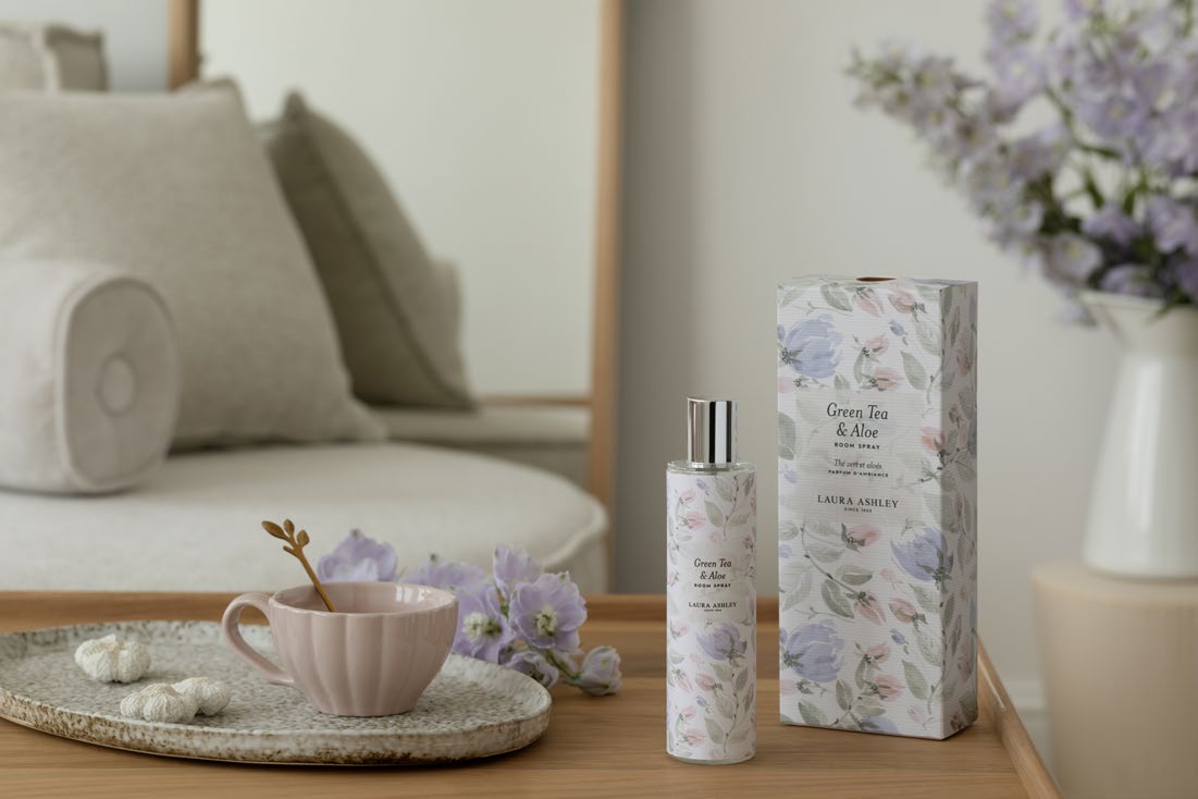 Ανανεώστε άμεσα την ατμόσφαιρα του χώρου σας με το αρωματικό σπρέι της Laura Ashley, φέρνοντας μια αίσθηση φρεσκάδας και φυσικής αρμονίας στον χώρο σας.Η σύνθεση του αρώματος συνδυάζει την καθαρότητα του πράσινου τσαγιού, που τονώνει και αναζωογονεί, με τη δροσιά της αλόης,  η οποία προσφέρει αίσθηση ηρεμίας και χαλάρωσης.Ένα άρωμα ανάλαφρο, φυσικό και εκλεπτυσμένο, ιδανικό για καθημερινή χρήση ή στιγμές απόλυτης ευεξίας.Για ακόμη πιο ολοκληρωμένη εμπειρία, συνδυάστε το με τα ίδια αρώματα της σειράς σε κεριά ή διαχυτές αρωμάτων.