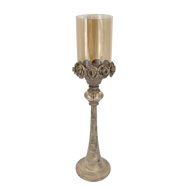 ΜΕΤΑΛΛΙΚΟ ΚΗΡΟΠΗΓΙΟ ΑΝΤΙΚΕ ΕΚΡΟΥ ΤΡΙΑΝΤΑΦΥΛΛΑ ΜΕ ΜΕΛΙ ΓΥΑΛΙ - Φ12.5x50.5cm 23991