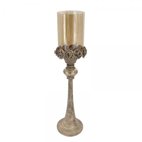 ΜΕΤΑΛΛΙΚΟ ΚΗΡΟΠΗΓΙΟ ΑΝΤΙΚΕ ΕΚΡΟΥ ΤΡΙΑΝΤΑΦΥΛΛΑ ΜΕ ΜΕΛΙ ΓΥΑΛΙ - Φ12.5x50.5cm 23991 | Crystal