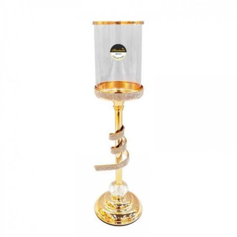 Ψηλό Γυάλινο Κηροπήγιο με Μεταλλικό Χρυσό Πόδι & Στρογγυλή Βάση 12x45cm GO787M