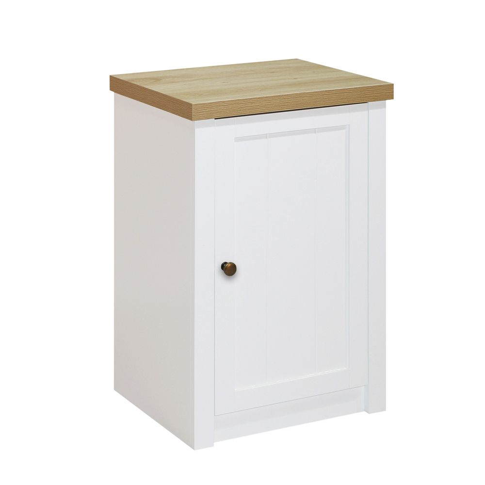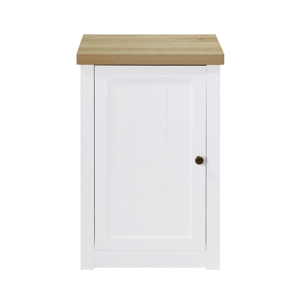 Το κομοδίνο Village ενσωματώνει την κομψότητα της παραδοσιακής αισθητικής με τη σύγχρονη λειτουργικότητα, αποτελώντας μια εξαιρετική επιλογή για κάθε χώρο. Κατασκευασμένο από μελαμίνη σε λευκή απόχρωση, με επιφάνεια σε φυσική απόχρωση ξύλου, αποπνέει φρεσκάδα και ζεστασιά. Διαθέτει ένα ντουλάπι με δύο ράφια, ιδανικό για την τακτοποίηση και αποθήκευση των αντικειμένων σας. Ο διαχρονικός σχεδιασμός του Village προσδίδει μια διακριτική πινελιά φινέτσας, καθιστώντας το μια κομψή και πρακτική επιλογή για κάθε υπνοδωμάτιο.