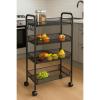Πρακτικό μεταλλικό τρόλεϊ αποθήκευσης και οργάνωσης σε μαύρο ματ χρώμα. Διαθέτει τρία καλάθια και τρεις γάντζους στο πλάι. Ιδανικό για το σπίτι ή το γραφείο, προσφέρει ευελιξία στη μετακίνηση χάρη στους περιστρεφόμενους τροχούς.