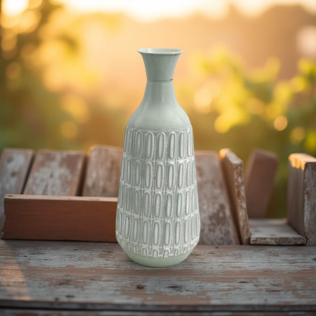 Το διακοσμητικό μεταλλικό βάζο δαπέδου  είναι ένα κομψό και εντυπωσιακό στοιχείο που προσθέτει στυλ και φινέτσα σε κάθε χώρο. Ιδανικό για τοποθέτηση στο σαλόνι, την είσοδο ή οποιοδήποτε άλλο δωμάτιο του σπιτιού, αυτό το βάζο συνδυάζει την ανθεκτικότητα του μετάλλου με έναν εκλεπτυσμένο σχεδιασμό, αποτελώντας ένα κεντρικό κομμάτι της διακόσμησης.
