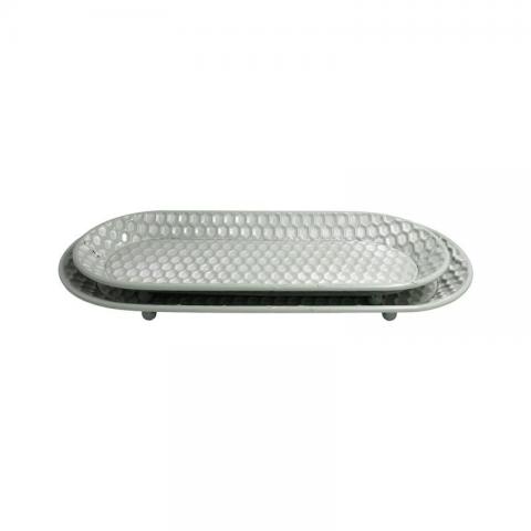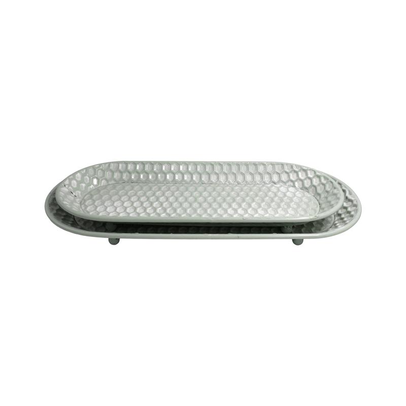 Υπέροχο σετ απο 2 μεταλλικούς διακοσμητικούς δίσκους που προσδίδουν λάμψη και στυλ στον χώρο. Η λεία επιφάνειά τους και ο μοντέρνος σχεδιασμός τους καθιστούν ιδανικούς για την παρουσίαση διάφορων διακοσμητικών αντικειμένων. Κατασκευασμένα από ανθεκτικό μέταλλο, προσφέρει μακροχρόνια αντοχή και διαχρονική ομορφιά. Ιδανικό για το κέντρο του τραπεζιού, την τραπεζαρία ή άλλους χώρους που επιθυμείτε να αναδείξετε. Χρώμα:Mint-Λευκό Διαστάσεις μεγάλου δίσκου:Μήκος:60εκΠλάτος:27εκΎψος:6εκ Διαστάσεις μικρού δίσκου:Μήκος:53εκΠλάτος:23εκΎψος:6εκ
