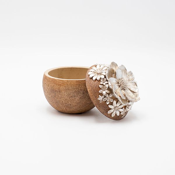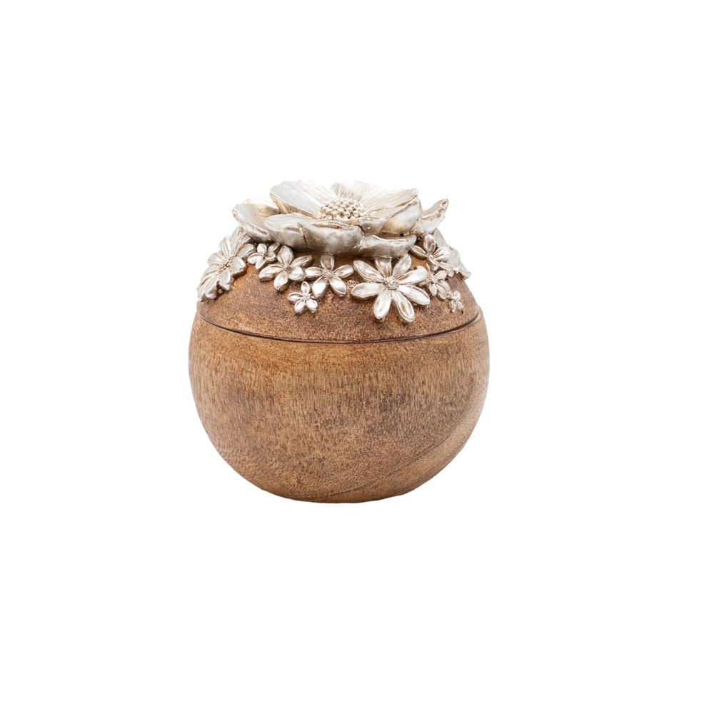 ΔΙΑΚΟΣΜΗΤΙΚΟ ΣΤΡΟΓΓΥΛΟ ΚΟΥΤΙ ΛΟΥΛΟΥΔΙΑ ΠΟΛΥΡΕΖΙΝ-ΞΥΛΟ ΦΥΣΙΚΟ-ΑΣΗΜΙ 9.5x9.5x9.5cm 819-00550 | Crystal
