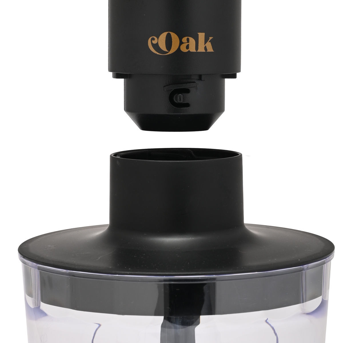 Εξοπλίστε την κουζίνα σας με το ραβδομπλέντερ Oak! Με ισχύ 800W και τέσσερις ανοξείδωτες λεπίδες, αυτό το ραβδομπλέντερ προσφέρει αποτελεσματική και γρήγορη ανάμιξη, ιδανικό για σούπες, σάλτσες, smoothies και πολλά άλλα. Περιλαμβάνει ένα μπολ ανάμιξης 500ml με δύο επιπλέον ανοξείδωτες λεπίδες για ευκολία στο ψιλοκόμμα και την ανάμιξη. Διαθέτει δύο ταχύτητες και ειδική λειτουργία Turbo, ενώ η εργονομική λαβή του εξασφαλίζει άνεση και σταθερότητα κατά τη χρήση. Η σειρά ηλεκτρικών συσκευών Oak, περιλαμβάνει μία γκάμα συσκευών για προετοιμασία φαγητού και πρωινού. Αναβαθμίστε την καθημερινότητά σας με στυλ και λειτουργικότητα, ενσωματώνοντας το μοντέρνο σχεδιασμό, με το μαύρο χρώμα και τις λεπτομέρειες ξύλου, στο χώρο σας.