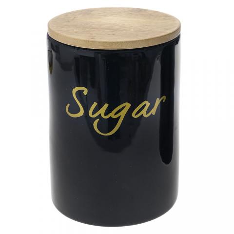 ΜΑΥΡΟ ΚΕΡΑΜΙΚΟ ΔΟΧΕΙΟ COFFEE ΜΕ BAMBOO ΚΑΠΑΚΙ 12X12X17EK | Crystal
