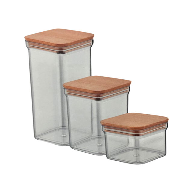 ΣΕΤ 3 ΤΕΜΑΧΙΩΝ ΒΑΖΑ PLEXIGLASS ΑΕΡΟΣΤΕΓΗ ΜΕ ΞΥΛΙΝΟ ΚΑΠΑΚΙ 0,5L+1L+1,5L NATURAL WOOD BPA FREE