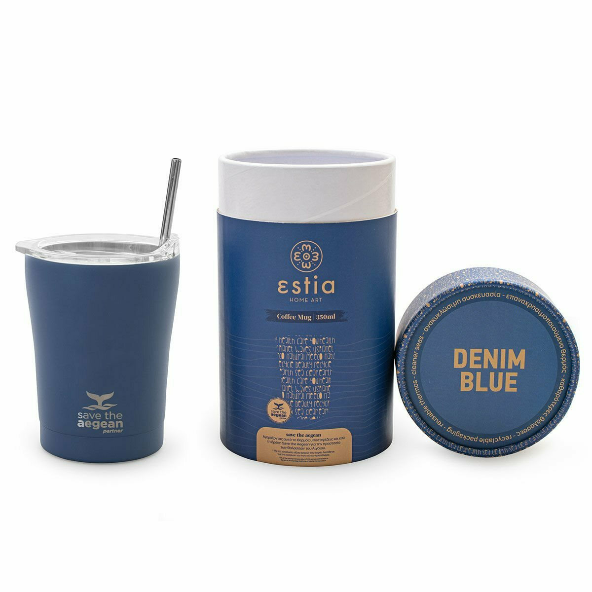 ESTIA ΘΕΡΜΟΣ COFFEE MUG SAVE THE AEGEAN 350ml DENIM BLUE 01-12182 | Crystal