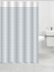 Κουρτίνα πολυεστερική 115gsm, αδιάβροχη, σε μπεζ χρώμα με ζακάρ διακόσμηση. Στη συσκευασία συμπεριλαμβάνονται δώδεκα πλαστικοί κρίκοι. Είναι εύκολη στο καθάρισμα, μαλακή και ευχάριστη αν έρθει σε επαφή με το δέρμα.