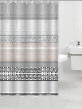Κουρτίνα υφασματινη 90gsm, αδιάβροχη, με διακόσμηση γεωμετρικά σχήματα σε σομόν και γκρι χρώματα. Στην συσκευασία συμπεριλαμβάνονται δώδεκα πλαστικοί κρίκοι. Είναι εύκολη στο καθάρισμα, μαλακή και ευχάριστη αν έρθει σε επαφή με το δέρμα.
