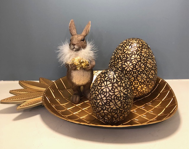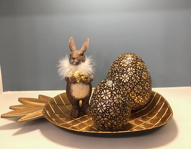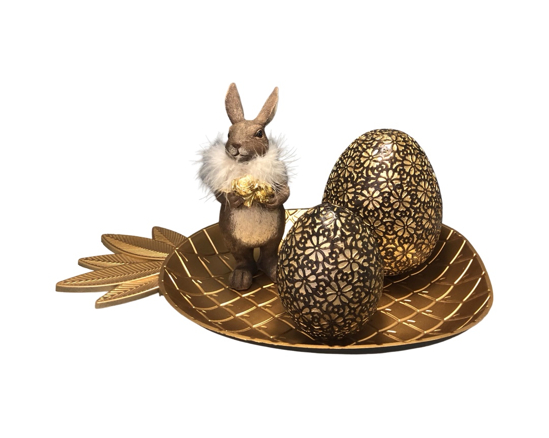 ΠΑΣΧΑΛΙΝΗ ΔΙΑΚΟΣΜΗΤΙΚΗ ΣΥΝΘΕΣΗ ΑΝΑΝΑΣ ΠΙΑΤΕΛΑ ΧΡΥΣΗ POLYRESIN 38Χ23,5Χ19ΕΚ