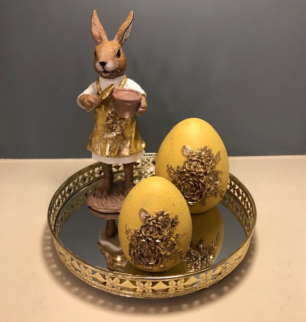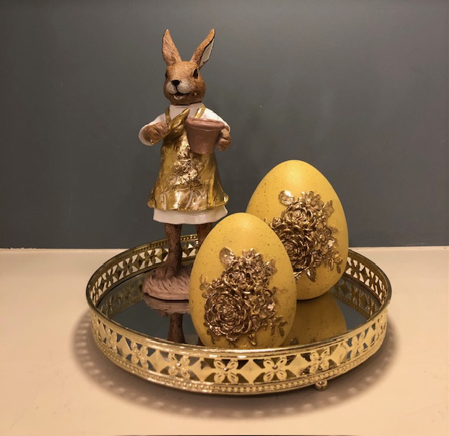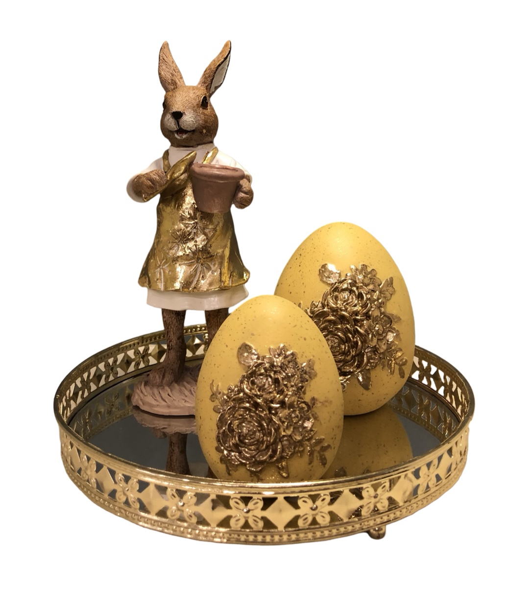 ΠΑΣΧΑΛΙΝΗ ΣΥΝΘΕΣΗ ΤΡΑΠΕΖΙΟΥ 4 ΤΕΜΑΧΙΩΝ ΜΕ ΜΕΤΑΛΛΙΚΟ ΧΡΥΣΟ ΔΙΣΚΟ ΜΕ ΚΑΘΡΕΠΤΗ 20Χ20Χ22ΕΚ