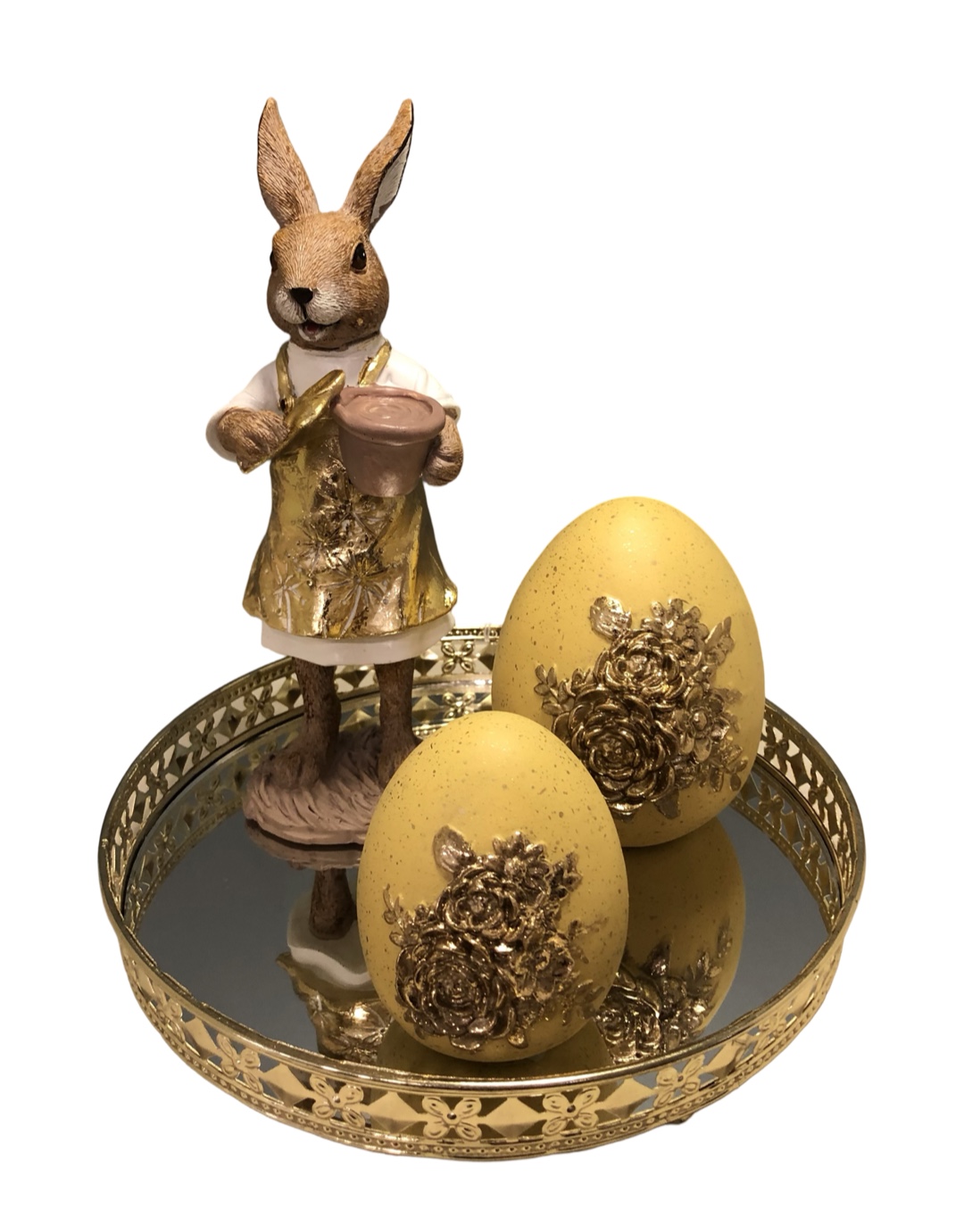 ΠΑΣΧΑΛΙΝΗ ΣΥΝΘΕΣΗ ΤΡΑΠΕΖΙΟΥ 4 ΤΕΜΑΧΙΩΝ ΜΕ ΜΕΤΑΛΛΙΚΟ ΧΡΥΣΟ ΔΙΣΚΟ ΜΕ ΚΑΘΡΕΠΤΗ 20Χ20Χ22ΕΚ | Crystal