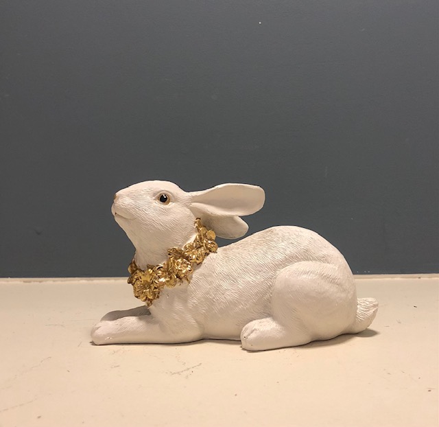 ΠΑΣΧΑΛΙΝΟ ΔΙΑΚΟΣΜΗΤΙΚΟ ΛΑΓΟΣ POLYRESIN ΛΕΥΚΟ ΜΕ ΧΡΥΣΑ ΛΟΥΛΟΥΔΙΑ 11Χ7Χ5ΕΚ 51303