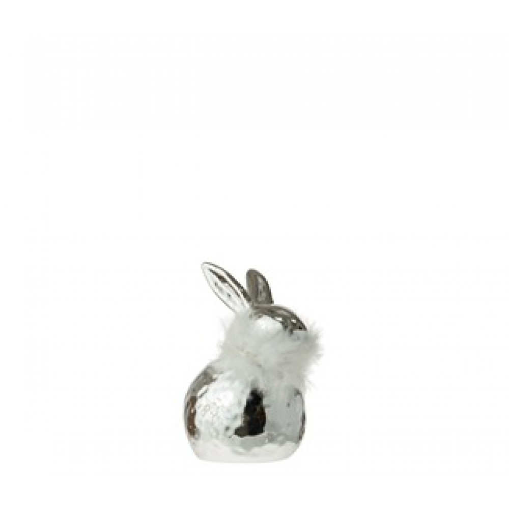 ΠΑΣΧΑΛΙΝΟΣ ΚΕΡΑΜΙΚΟΣ ΛΑΓΟΣ ΑΣΗΜΙ ΜΕ ΠΟΥΠΟΥΛΟ ΛΕΥΚΟ 8,5Χ6,7Χ11ΕΚ 51184 | Crystal