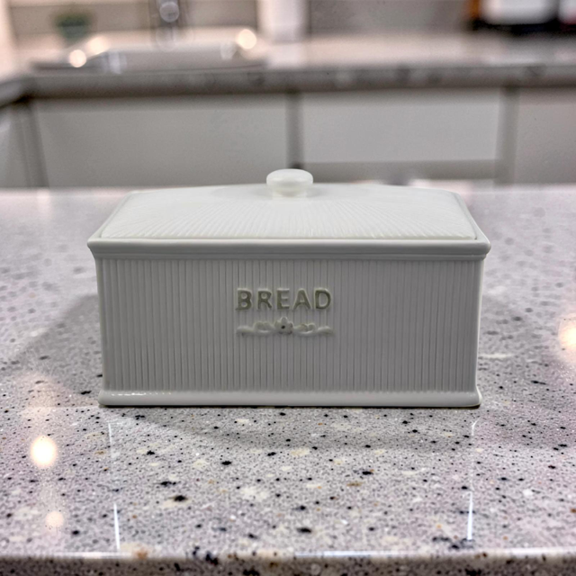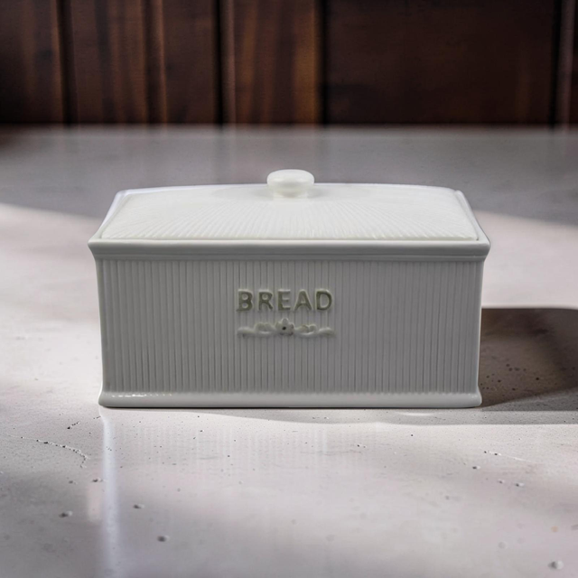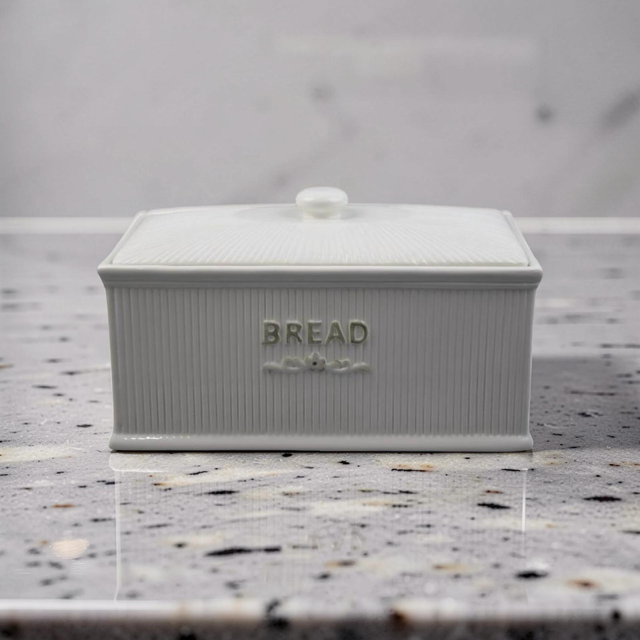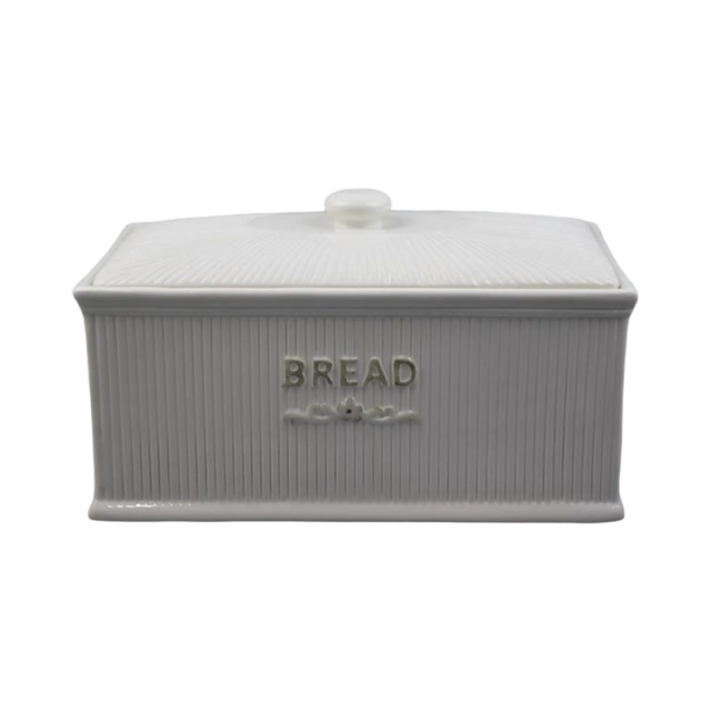 Ψωμιέρα με Καπάκι Κεραμική σε Λευκό Χρώμα Διακομισμένη με Ρίγες 32.7x19x19cm QC23A659 | Crystal