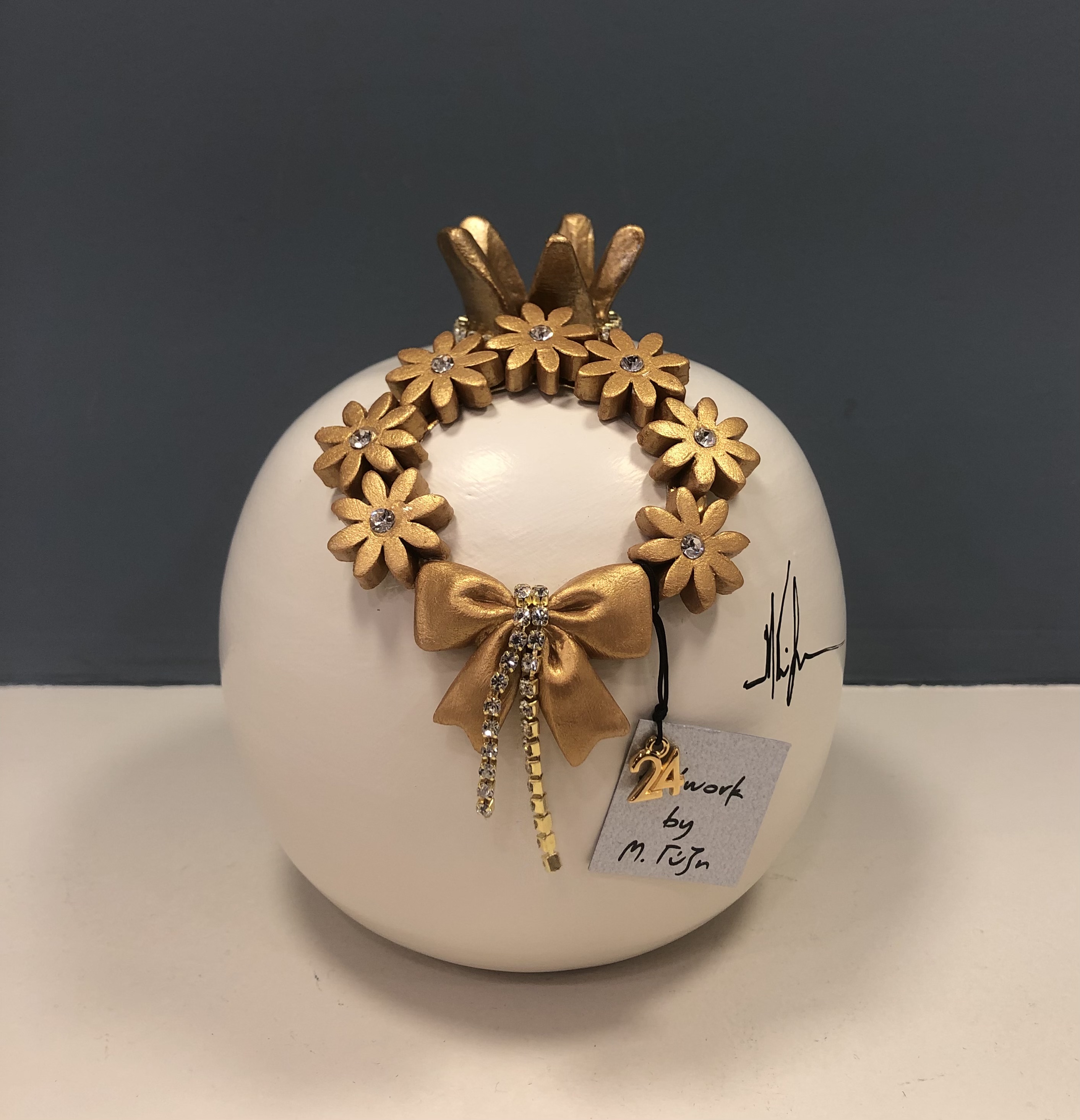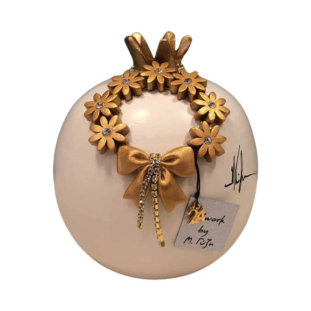 ΧΕΙΡΟΠΟΙΗΤΟ ΚΕΡΑΜΙΚΟ ΡΟΔΙ ΕΚΡΟΥ ΧΡΥΣΟ ΣΤΕΦΑΝΙ /ΣΤΡΑΣ 11,5Χ11ΕΚ ARTWORK BY Μ. ΓΥΖΗ | Crystal
