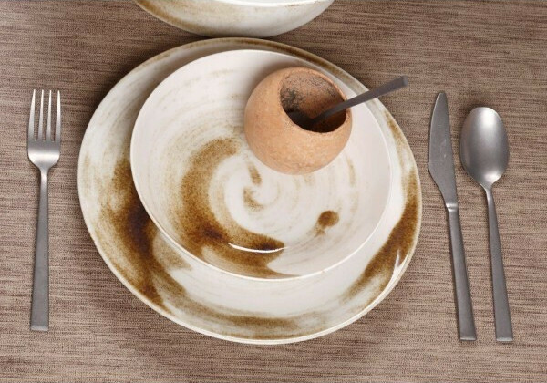 Σερβίτσιο φαγητού 20 τεμαχίων από πορσελάνη της σειράς "Splash" με μοντέρνο σχέδιο στις αποχρώσεις του μπεζ και του καφέ. Είναι κατασκευασμένα από υψηλής ποιότητας πορσελάνη και κατάλληλα για χρήση στο πλυντήριο πιάτων και το φούρνο μικροκυμάτων.