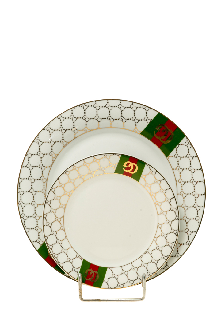 ΣΕΤ 7 ΤΕΜΑΧΙΩΝ ΠΑΣΤΑΣ ΠΟΡΣΕΛΑΝΗΣ ΜΕ ΧΡΥΣΟ ΠΡΑΣΙΝΟ ΣΧΕΔΙΟ ΜΕΓΕΘΟΣ ΠΙΑΤΟΥ 26,7ΕΚ ΚΑΙ ΤΑ ΦΡΟΥΤΟΥ 19ΕΚ | Crystal