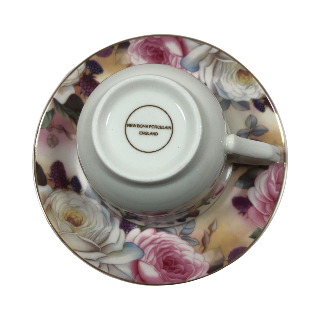 Φλυτζάνια Τσαγιού Πορσελάνης Σετ 6τεμ Σε Καπελιέρα Vintage Roses New bone porcelain england