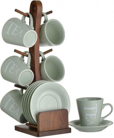 INART ΦΛΥΤΖΑΝΙΑ ΤΣΑΓΙΟΥ ΣΕΤ ΤΩΝ 6 ΜΕ ΒΑΣΗ ΞΥΛΙΝΗ ΠΟΡΣΕΛΑΝΗ ΒΕΡΑΜΑΝ NATURAL 14X18X36 - INART - 3-60-931-0185 | Crystal