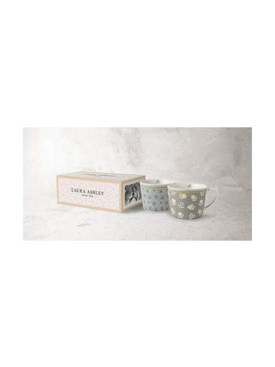 Laura Ashley Fine Bone Κούπα από Πορσελάνη Γκρι 280ml 2τμχ LA182945