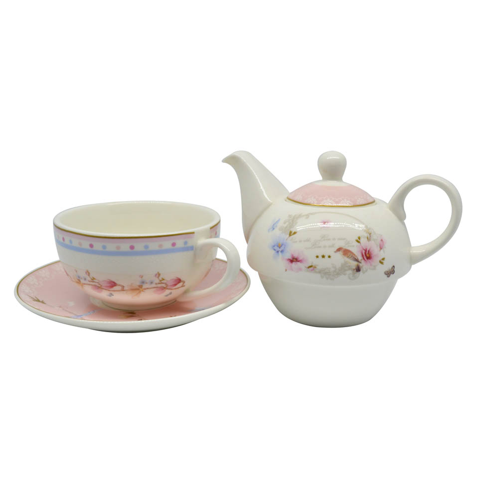 Ρομαντικά τσαγιερό ιδανικά για να απολαύσετε το ρόφημα σας ή να τα προσφέρετε ως δώρο στα αγαπημένα σας πρόσωπα. Σετ τσαγιερό ατομικό δύο τεμαχίων από ποιοτική πορσελάνη Bone china με φλοράλ σχέδιο σε ροζ και γαλάζιο χρώμα και συσκευασία δώρου. Το σετ περιλαμβάνει ένα φλυτζάνι με πιατάκι και μια τσαγιέρα. Κατάλληλα για χρήση στο πλυντήριο πιάτων.