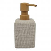 Σαπουνοθήκη για υγρό σαπούνι πολυεστερική, μπεζ με σαγρέ υφή και αντλία σε φυσικό χρώμα με εφέ ξύλου. Αξεσουάρ μπάνιου εξαιρετικής ποιότητας με μοντέρνο και κομψό σχεδιασμό. Συνδυάστε τα ιδανικά με αντικείμενα της υπόλοιπης σειράς.