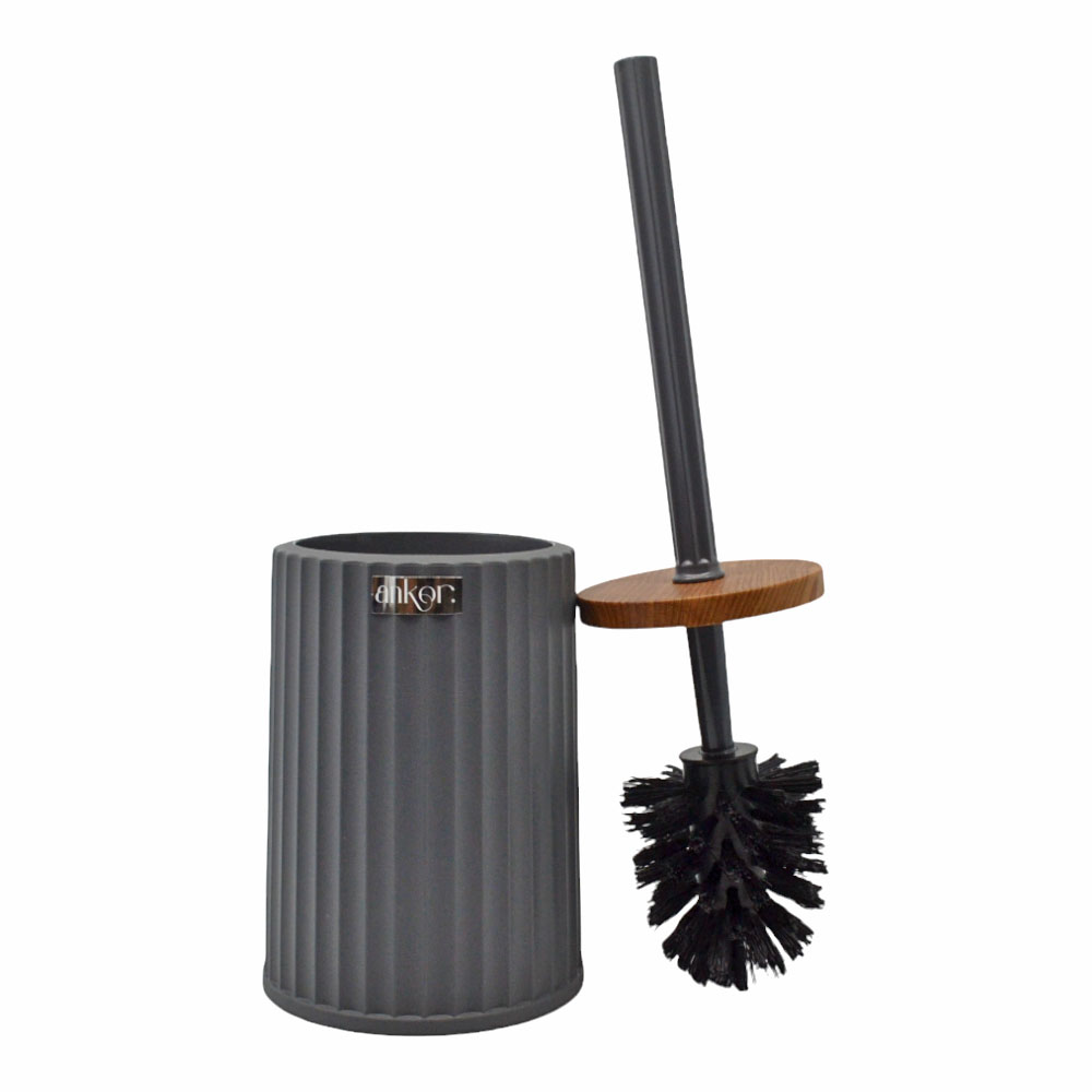 Πιγκάλ πλαστικό σε ανθρακί χρώμα με ανάγλυφη διακόσμηση ρίγες, ματ φινίρισμα και όψη ξύλου στο καπάκι. Διαθέτει μαύρο βουρτσάκι υψηλής αντοχής στο χρόνο.